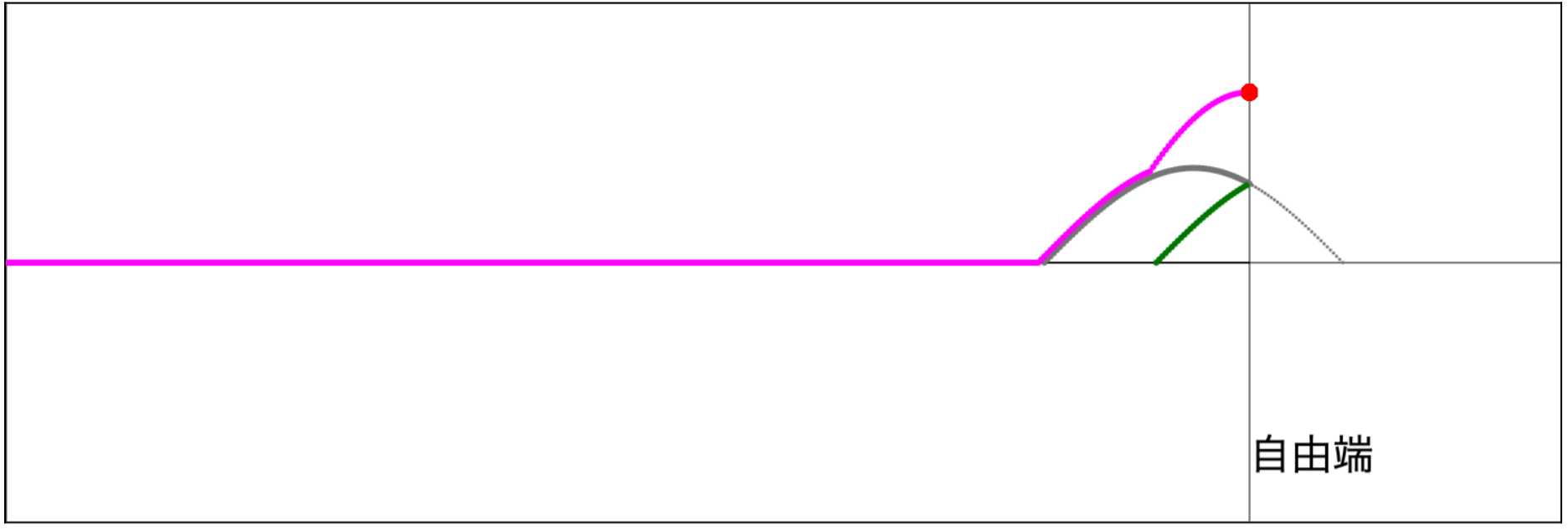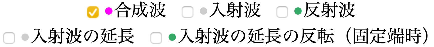 グリーン(細):入射波の延長の反転(固定端のみ)