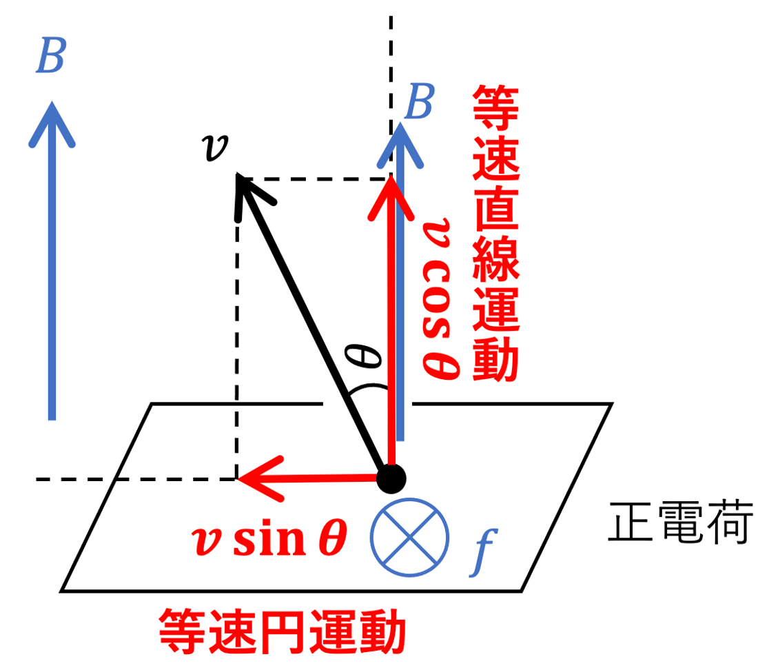 荷電粒子が磁場に対して斜めに入射すると,らせん運動をする.
