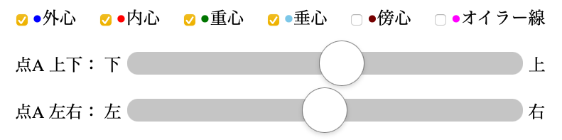 このページでは「三角形の五心」の使用方法等を説明します.表示画面について