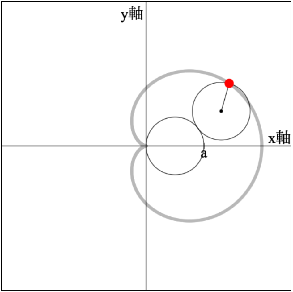 赤球が描く軌跡(灰色線)がカージオイドです.