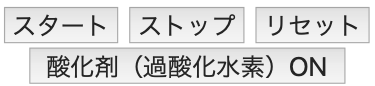 酸化剤(過酸化水素)ON:酸化剤として過酸化水素を入れた状態になります.もう一度クリックすると過酸化水素がない状態に戻ります.