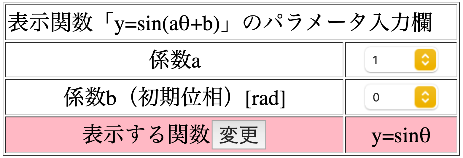図の下に表示する関数の式が表示されます(ここではy=sinθ).